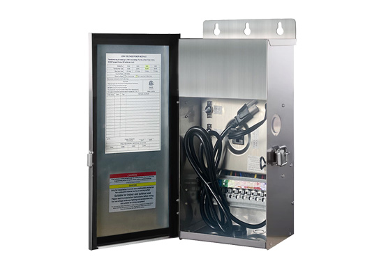 Понижающий трансформатор для подключения ландшафтных низковольтных светильников.