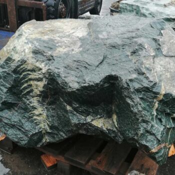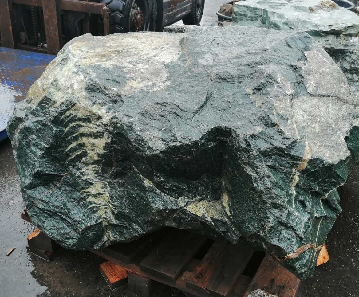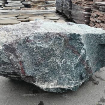 Валун Габбро-Диабаз, преобладает зелено-изумрудный цвет, с легким серым оттенком.